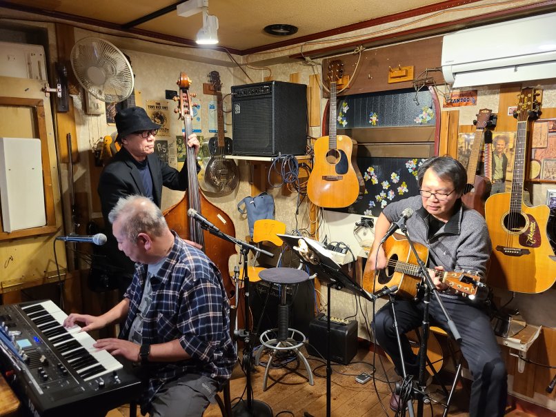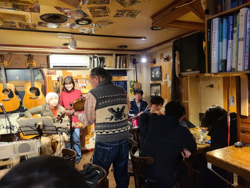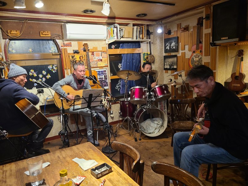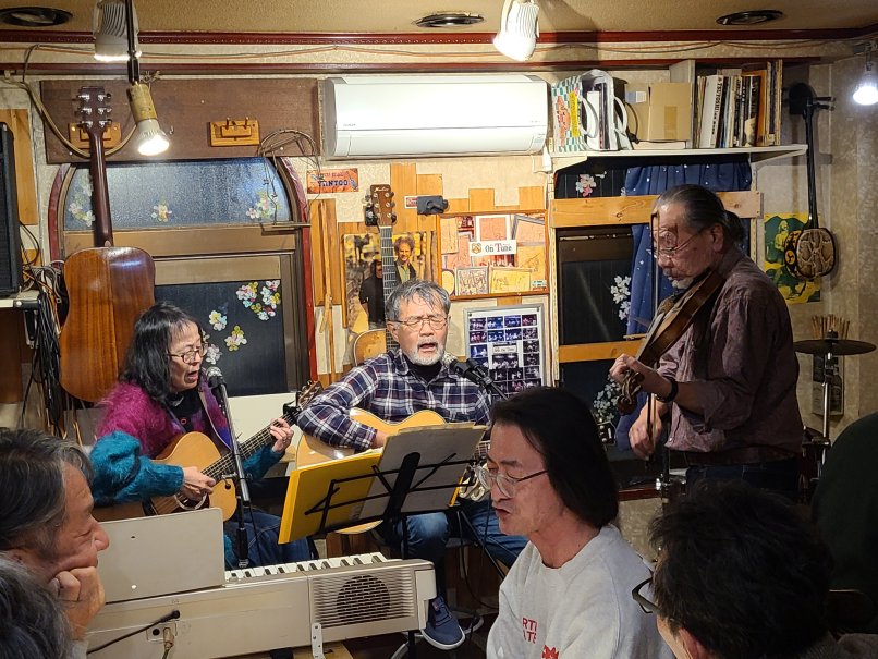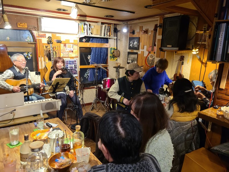 (フォーク&アメリカン・ミュージック酒場)![]() 腕は二の次、心意気! フォーク・ソングやカントリー等アコースティックな音楽をいつでも呑 みながら気楽に演奏できます。音楽を通じ人と人との出逢いと語らい とふれあいで、楽しい一時と楽しい日々をみんなで過ごしましょう! アリスサイモン&ガーフンクル、PPM、ブラフォー、 色々と! ラテン、ボサノバ、フラメンコなどなど世界の民族音楽、 大歓迎!ロック、ジャズもOK! もちろん聴くだけでも、呑むだけでもOK! 料金システム 2000円 (ボトルの方は氷、水無料) 24時以降の退店は+200円 |