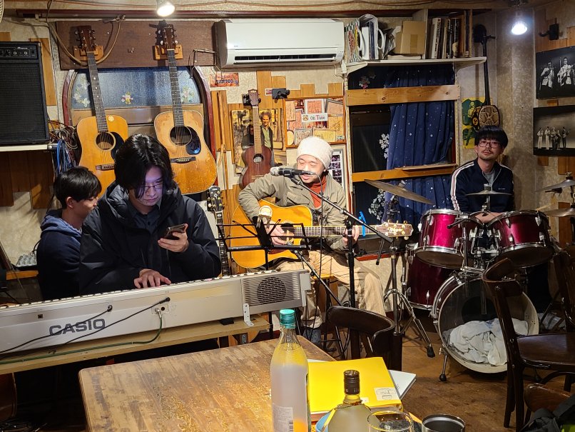 (フォーク&アメリカン・ミュージック酒場)![]() 腕は二の次、心意気! フォーク・ソングやカントリー等アコースティックな音楽をいつでも呑 みながら気楽に演奏できます。音楽を通じ人と人との出逢いと語らい とふれあいで、楽しい一時と楽しい日々をみんなで過ごしましょう! アリスサイモン&ガーフンクル、PPM、ブラフォー、 色々と! ラテン、ボサノバ、フラメンコなどなど世界の民族音楽、 大歓迎!ロック、ジャズもOK! もちろん聴くだけでも、呑むだけでもOK! 料金システム 2000円 (ボトルの方は氷、水無料) 24時以降の退店は+200円 |